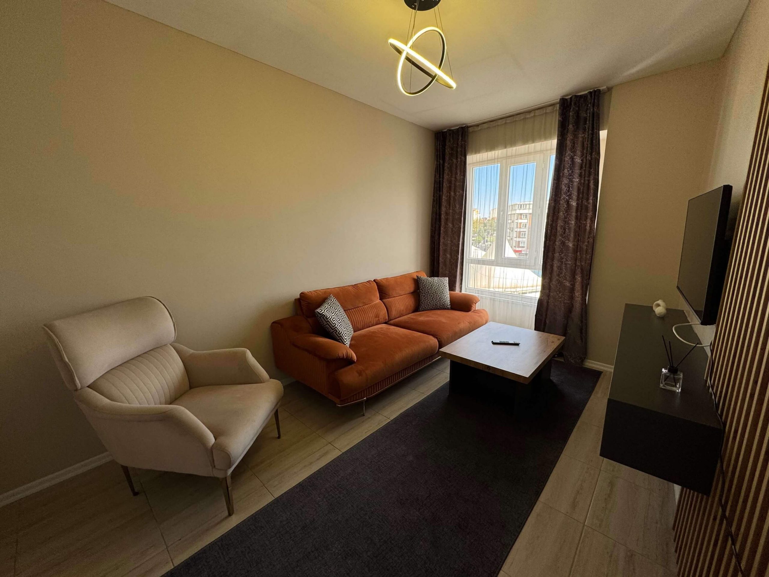 Zarif tasarımı ve konforlu detaylarıyla modern dairelerimizde evinizin rahatlığını yaşayın. Geniş yaşam alanlarıyla hem kısa hem de uzun süreli konaklamalar için ideal bir ortam sunuyoruz
